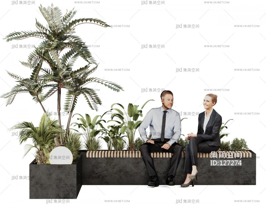 现代植物花槽公共座椅 3d模型下载 [模型ID:127274]