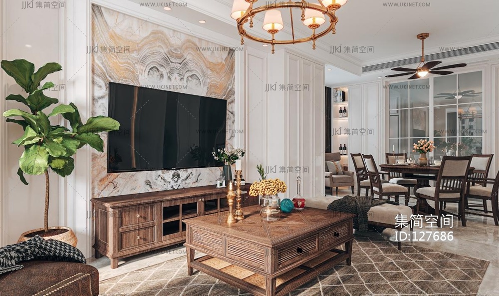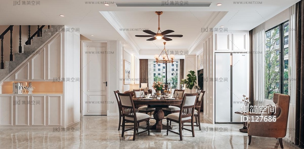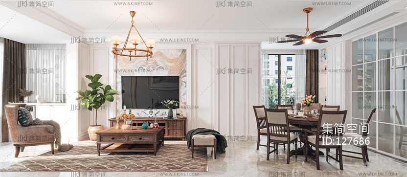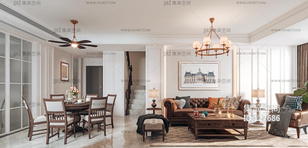 美式别墅客餐厅 3d模型下载 [模型ID:127686]