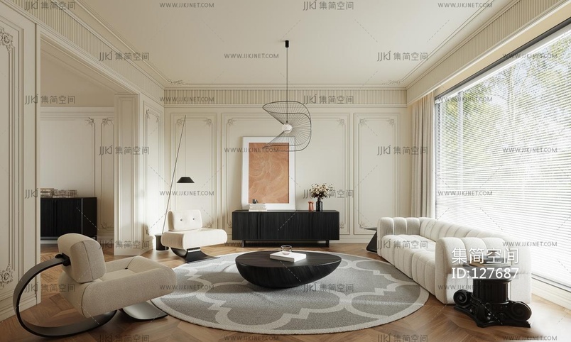 轻法式复古客厅 3d模型下载 [模型ID:127687]