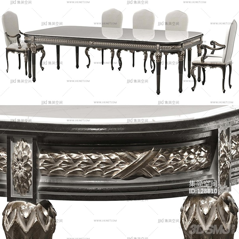 法式古典雕花餐桌椅 3d模型下载 [模型ID:128810]
