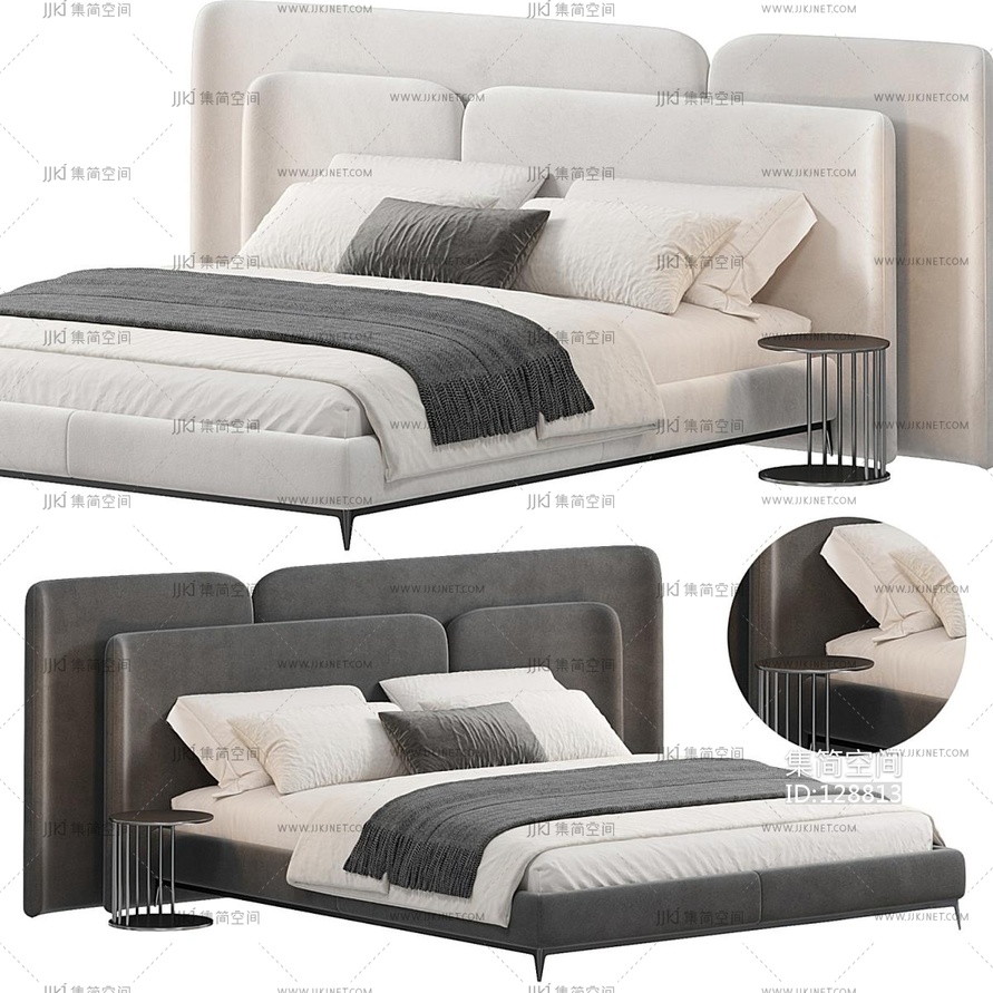 现代双人床 3d模型下载 [模型ID:128813]