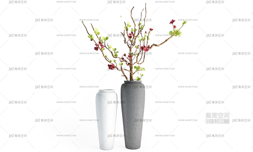 青瓷花盆中的树枝花束,植物插画3D模型cr3d模型下载