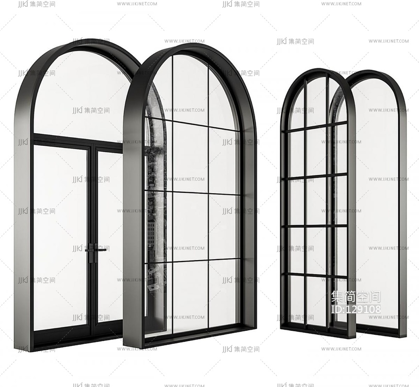 简欧金属窗户,拱形窗户 3d模型下载 [模型ID:129108]