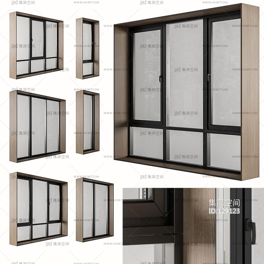 现代窗户铝合金窗户建筑窗 3d模型下载 [模型ID:129123]