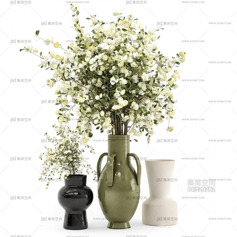 现代花艺__玻璃花瓶_鲜花_插花_装饰摆件3D模型3d模型下载