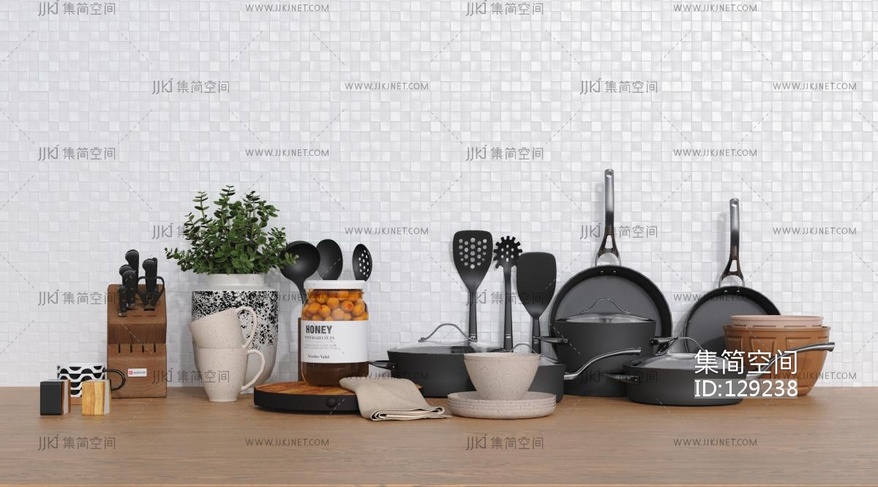 现代厨房用品装饰品厨具 3d模型下载 [模型ID:129238]