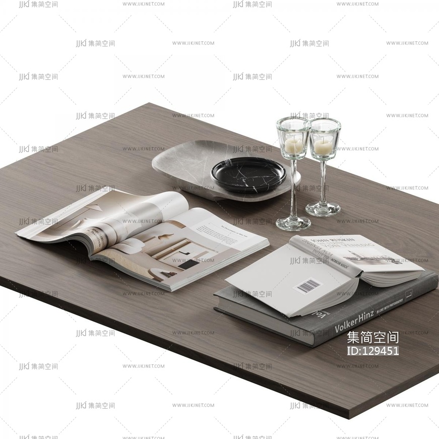 现代茶几摆件书籍书本 3d模型下载 [模型ID:129451]