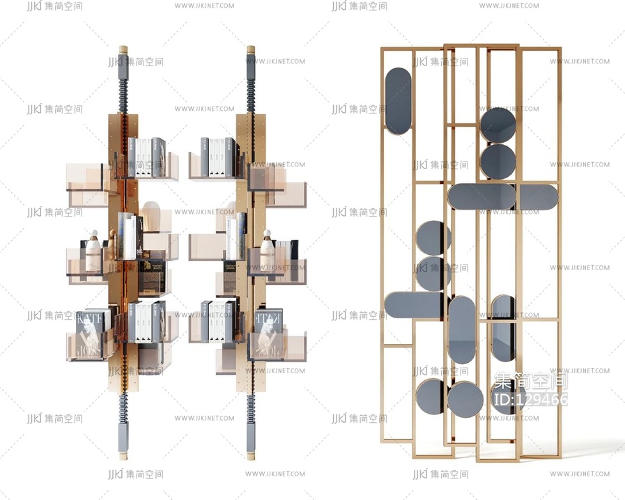 现代金属屏风隔断旋转书架书柜 3d模型下载 [模型ID:129466]