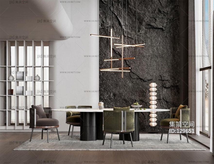 现代家居餐厅餐桌椅 3d模型下载 [模型ID:129651]