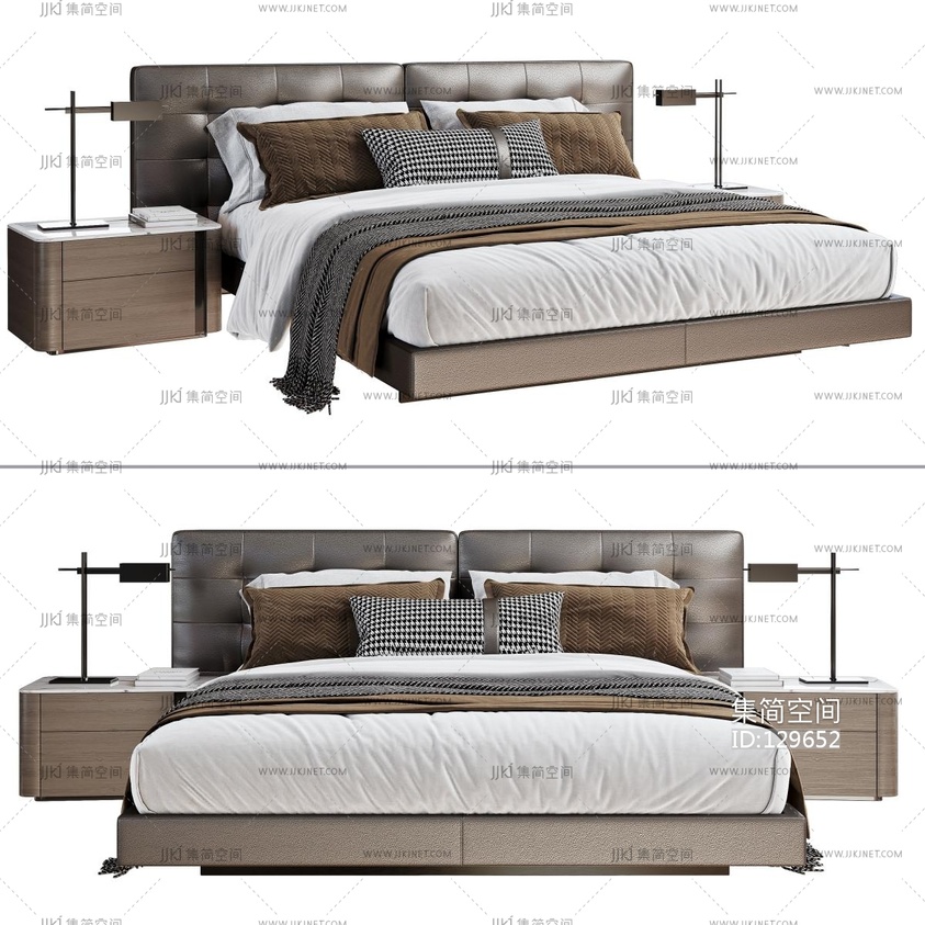 现代双人床床头柜 3d模型下载 [模型ID:129652]