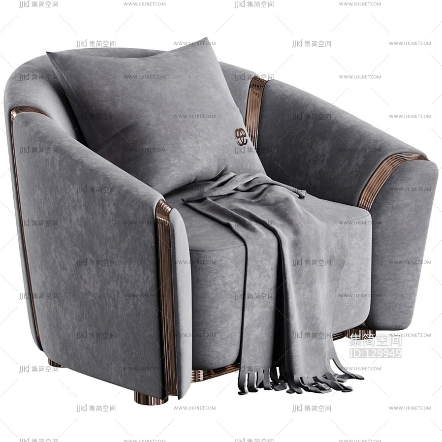 现代轻奢单人沙发 3d模型下载 [模型ID:129949]