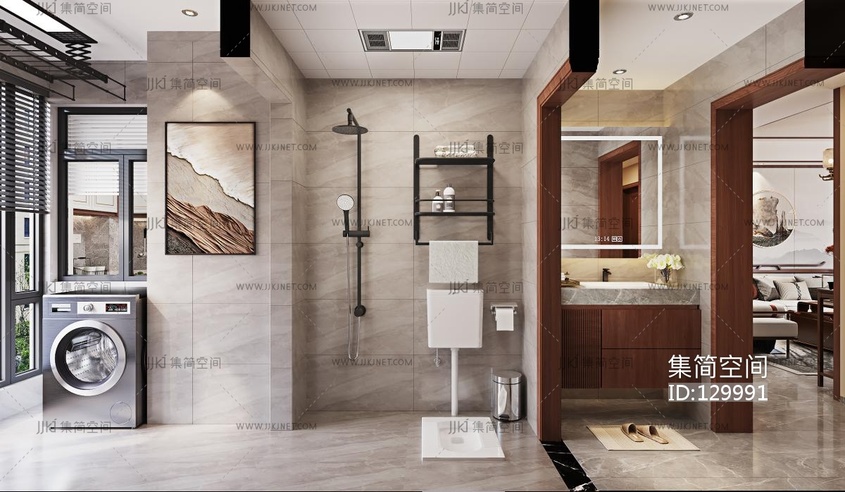 新中式卫生间 3d模型下载 [模型ID:129991]