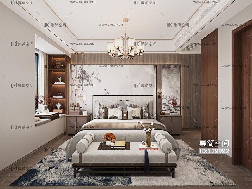 6法式中古家居卧室_主卧_飘窗卧室_高级灰卧室3D模型cr3d模型下载