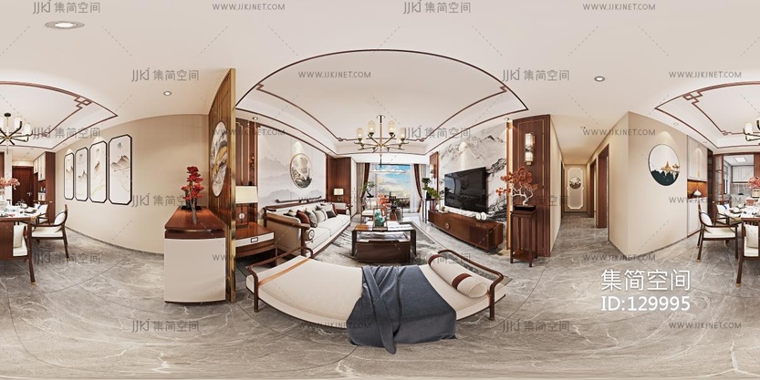 新中式客餐厅全景 3d模型下载 [模型ID:129995]