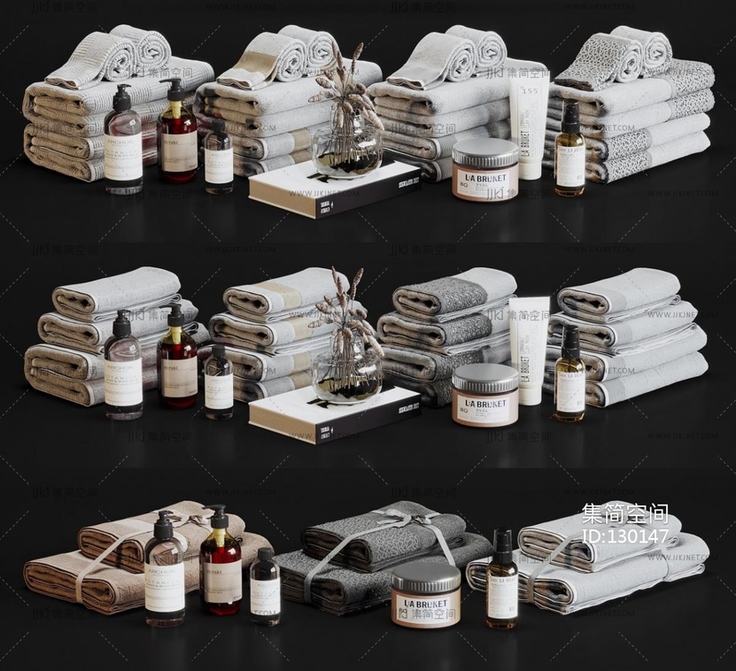现代卫浴用品组合洗漱用品毛巾 3d模型下载 [模型ID:130147]