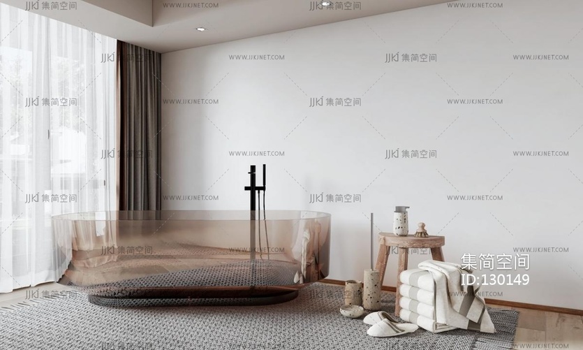 现代亚克力透明浴缸洗漱用品组合 3d模型下载 [模型ID:130149]