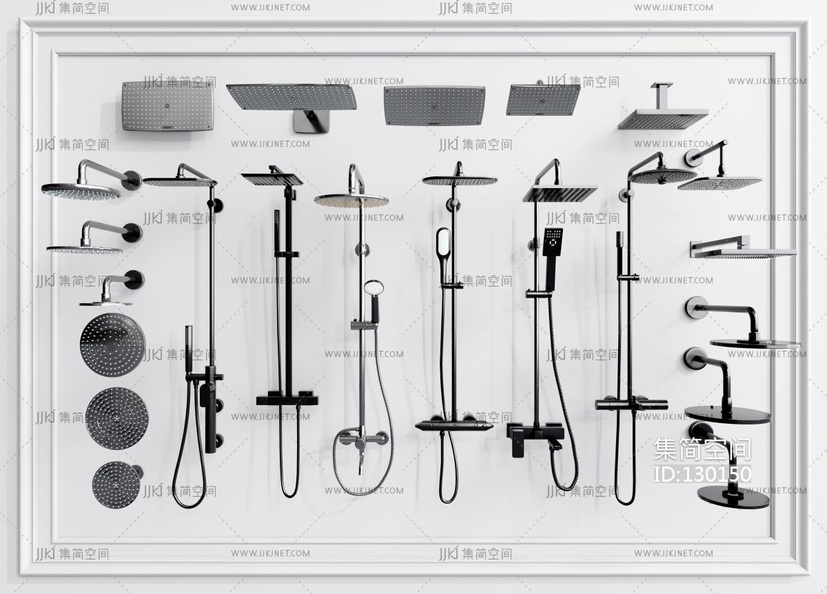 现代淋浴花洒喷头,花洒 3d模型下载 [模型ID:130150]