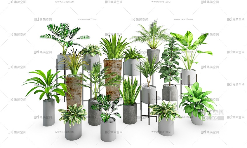 02-植物盆栽,花盆,组合3D模型vrrr3d模型下载