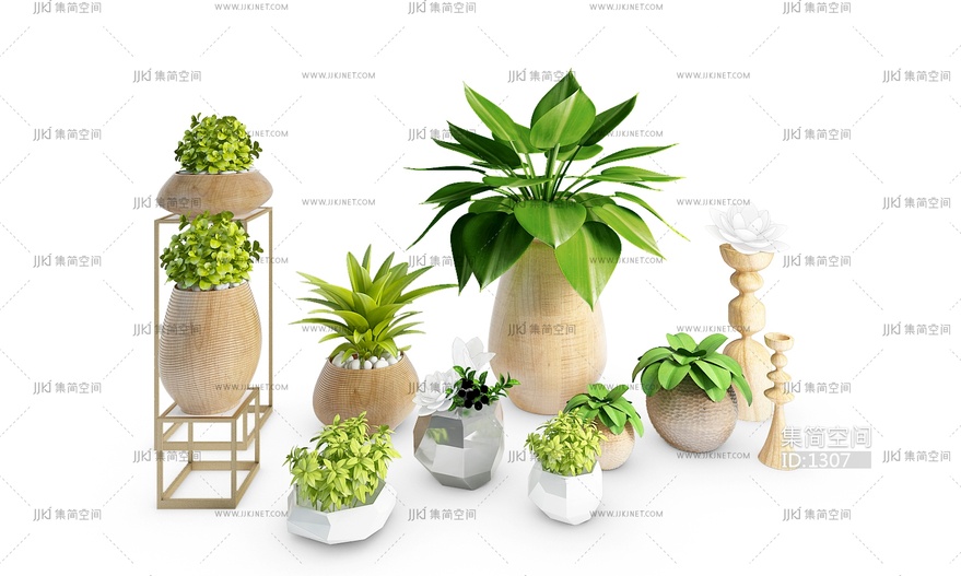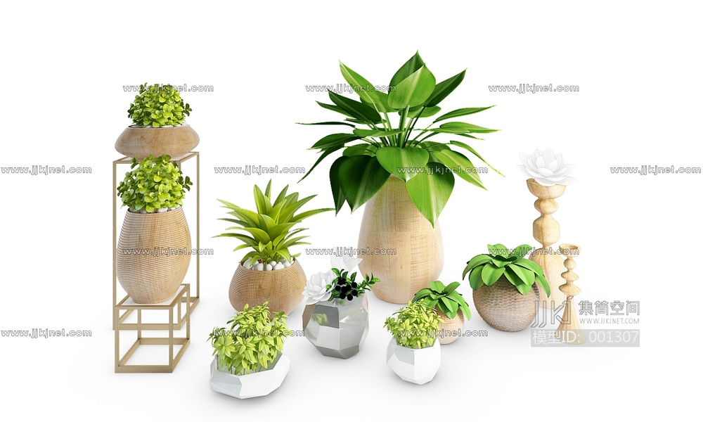 02-植物盆栽,花盆,组合3D模型vrrr3d模型下载