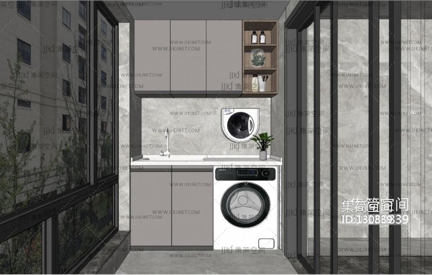 现代暗黑风别墅花园庭院SU模型su草图模型下载