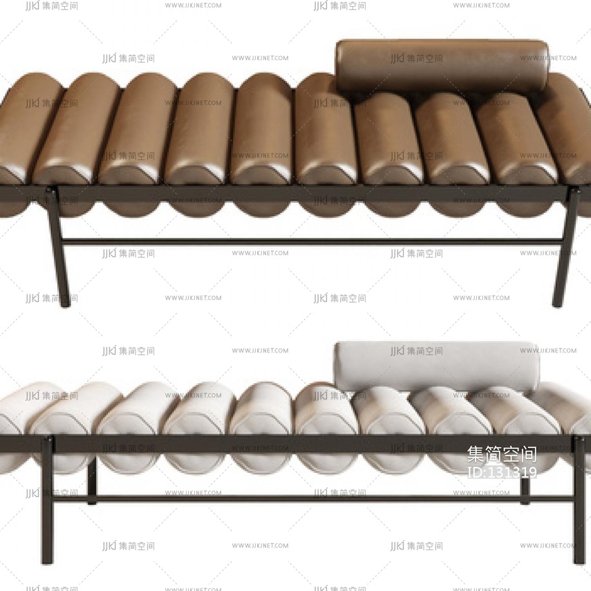 现代中古其他凳子_贵妃椅_贵妃榻_皮革长凳SU模型su草图模型下载