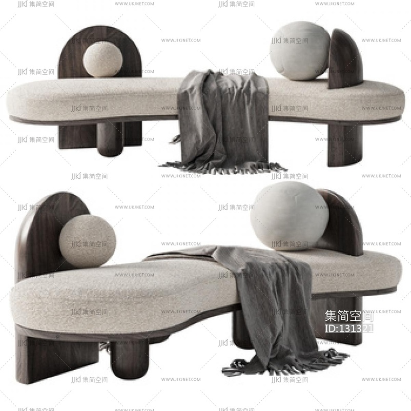 现代中古其他凳子_贵妃椅_贵妃榻_皮革长凳SU模型su草图模型下载