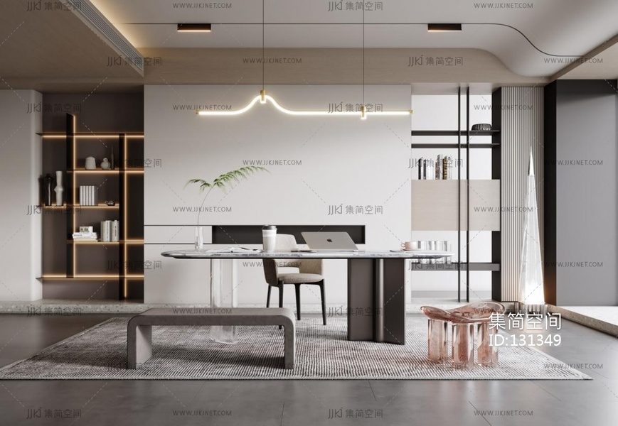现代轻奢书房 3d模型下载 [模型ID:131349]