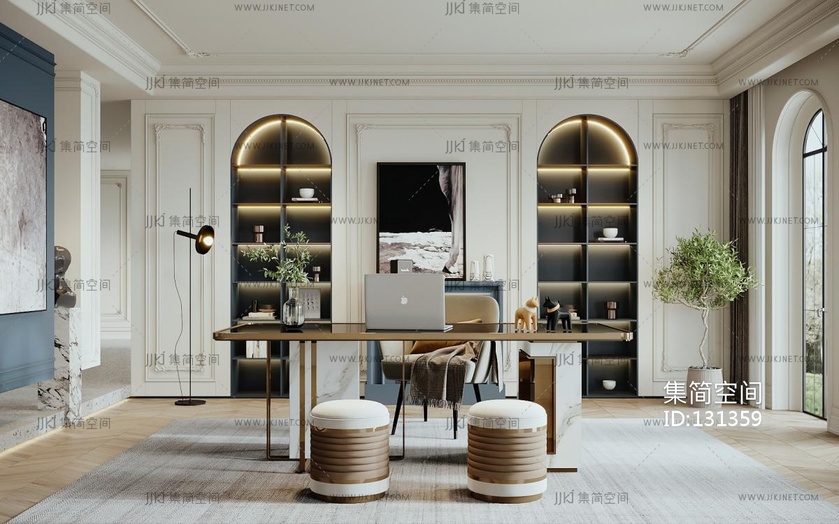轻法式书房 3d模型下载 [模型ID:131359]