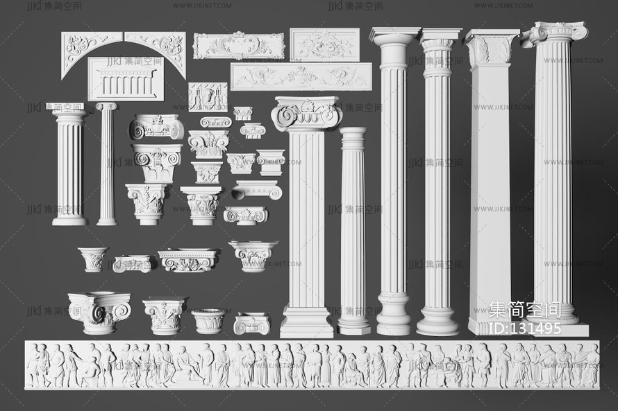 欧式罗马柱雕花柱头浮雕 3d模型下载 [模型ID:131495]