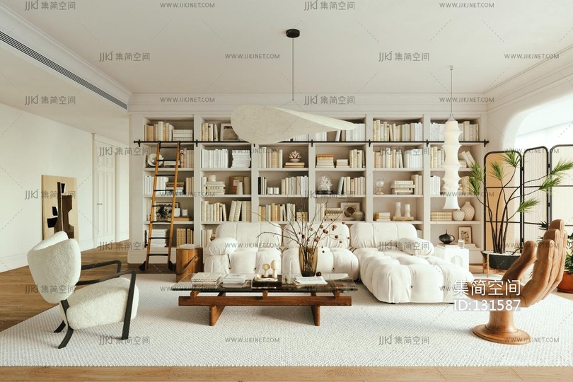 奶油风客厅 3d模型下载 [模型ID:131587]