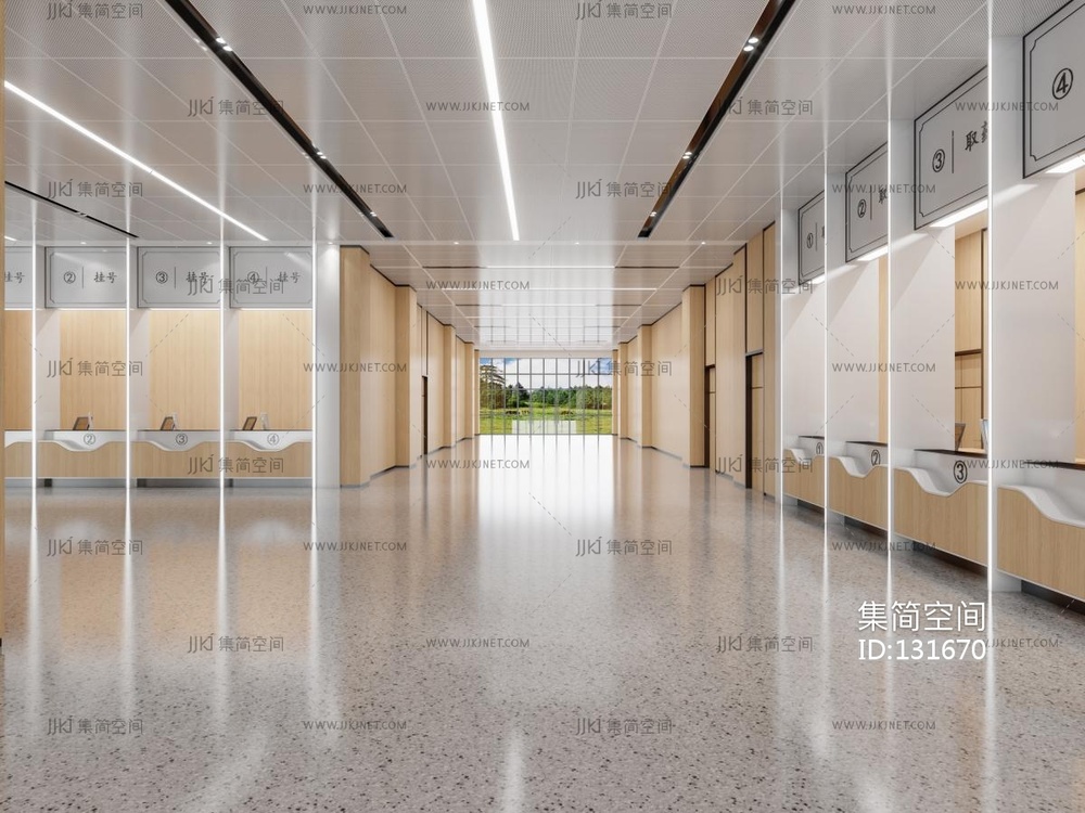01现代新中式医院 正骨医院大厅 走廊 挂号区 医院前台 等候区 中医 西医药房3d模型下载