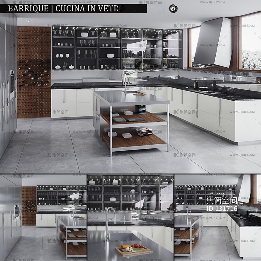 现代厨房橱柜酒柜,冰箱 3d模型下载 [模型ID:131716]