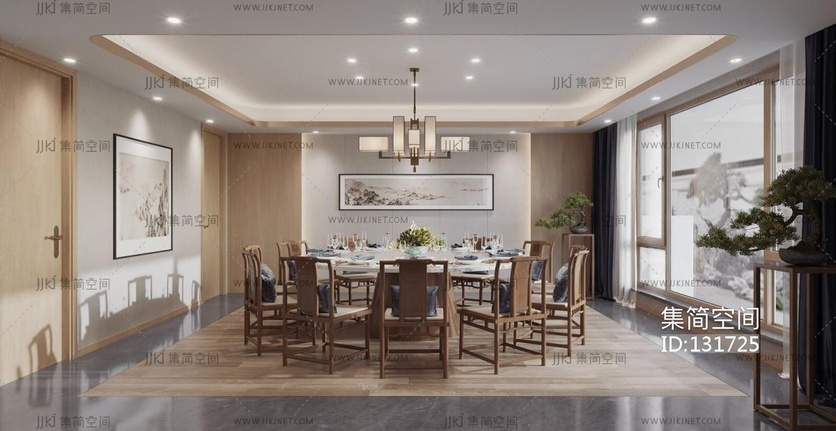 新中式餐厅包厢 包间3d模型 3d模型下载