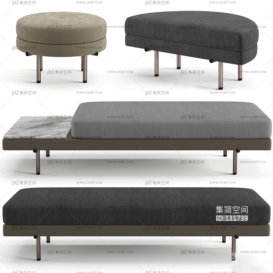 现代沙发凳床尾凳 3d模型下载 [模型ID:131739]