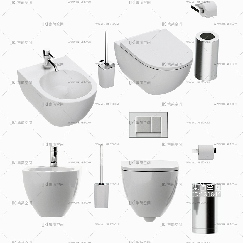 现代马桶坐便器,壁挂马桶垃圾桶手纸盒 3d模型下载 [模型ID:131844]