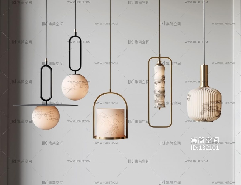 新中式小吊灯 3d模型下载 [模型ID:132101]