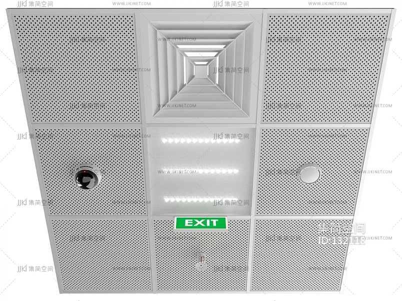 现代矿棉板 天花板安全出口,摄像头 3d模型下载 [模型ID:132118]