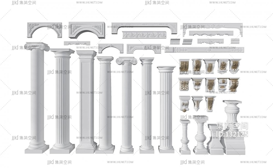 欧式罗马柱,雕花角线,宝瓶栏杆 3d模型下载 [模型ID:132125]