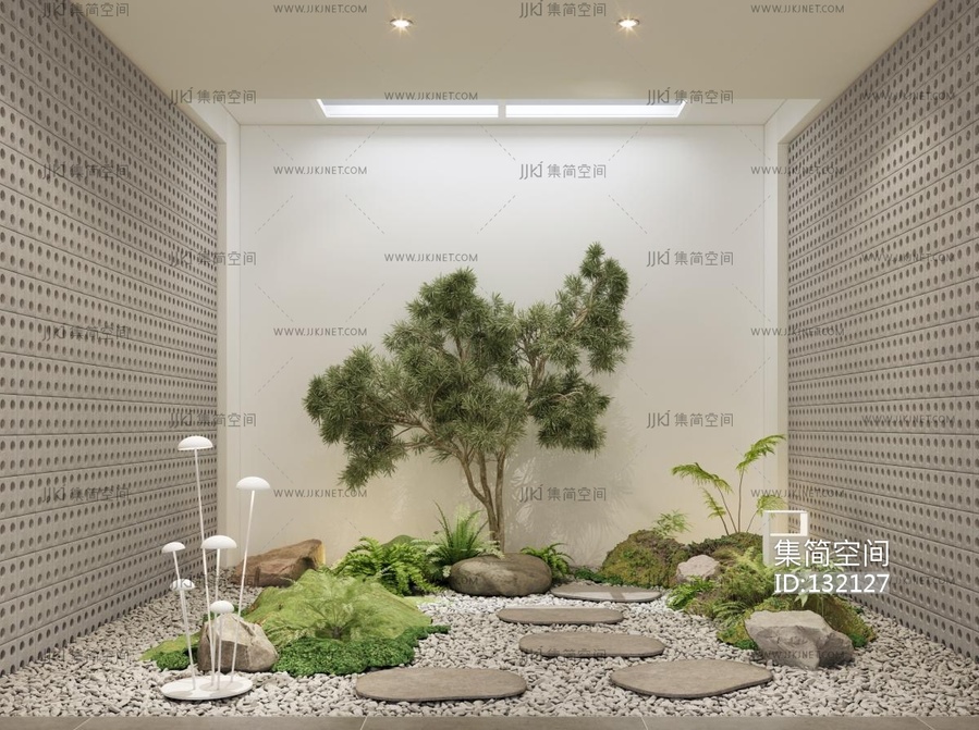 现代新中式室内景观小品,绿植苔藓蘑菇 3d模型下载 [模型ID:132127]