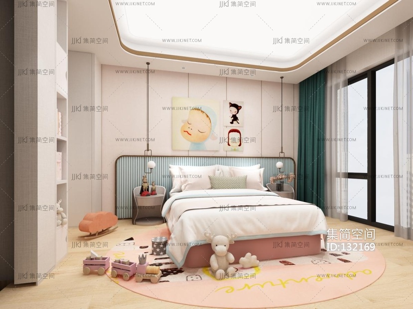 07-现代儿童房,儿童床学习桌-3d模型下载