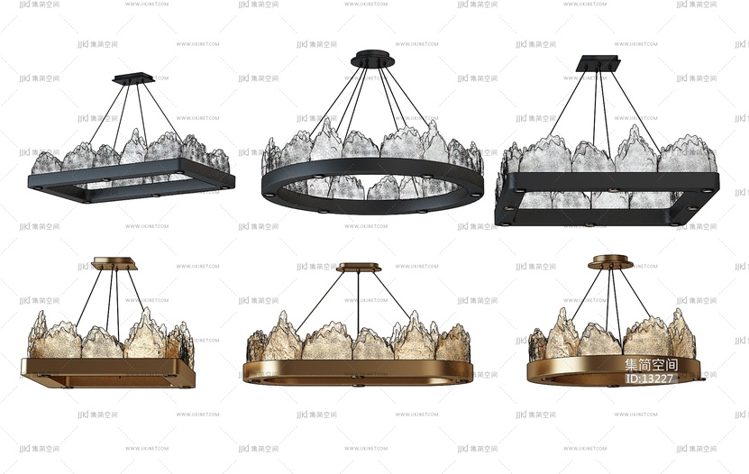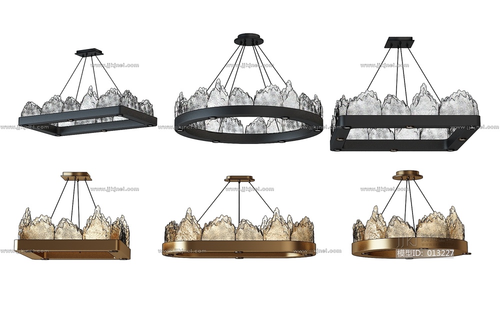 H21-1203新中式水晶吊灯组合 3d模型下载 [模型ID:13227]