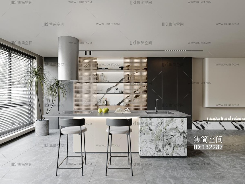现代开放式厨房,岛台中岛 3d模型下载 [模型ID:132287]