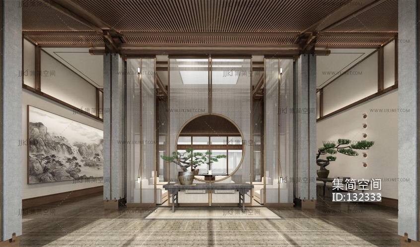 新中式酒店会所会客室 3d模型下载 [模型ID:132333]