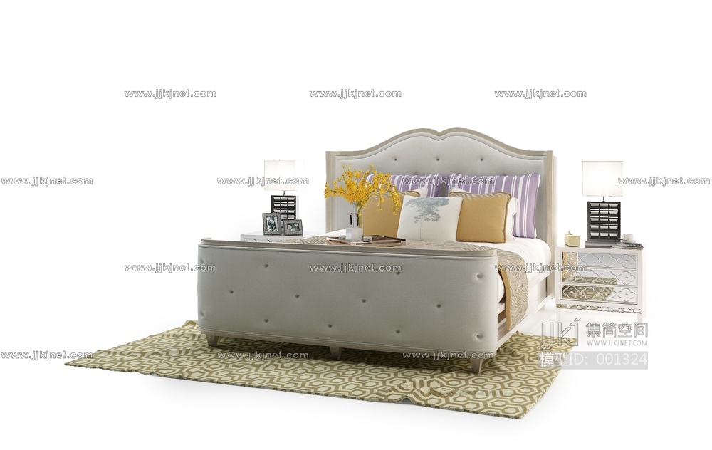 201简欧卧室双人床3d模型下载