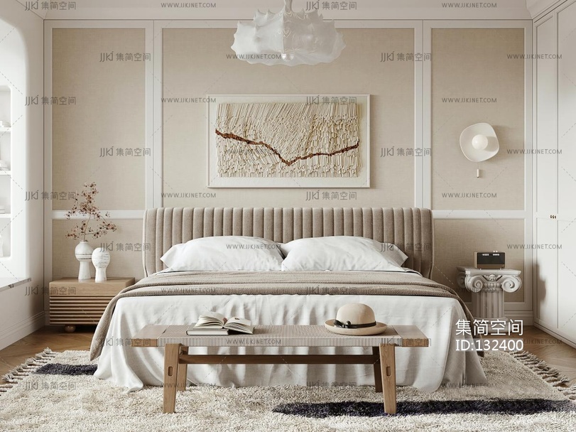 法式奶油风卧室 3d模型下载 [模型ID:132400]