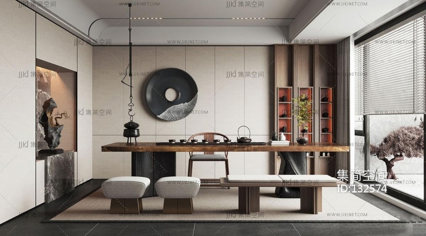 现代书房 书桌椅 壁柜 挂画 吊灯 书 盆栽 摆件3d模型下载