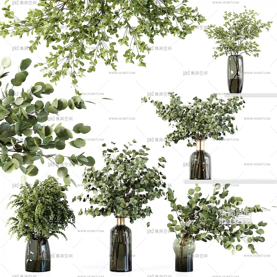 青瓷花盆中的树枝花束,植物插画3D模型cr3d模型下载