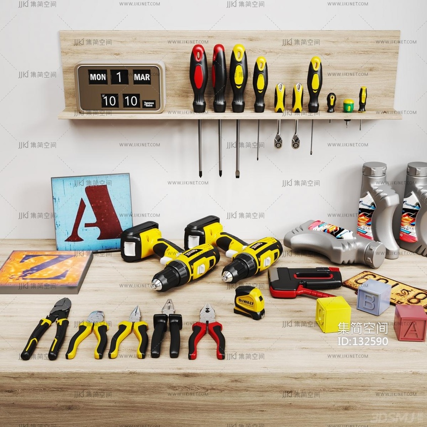 现代电钻螺丝批钳子五金工具3D模型 3d模型下载