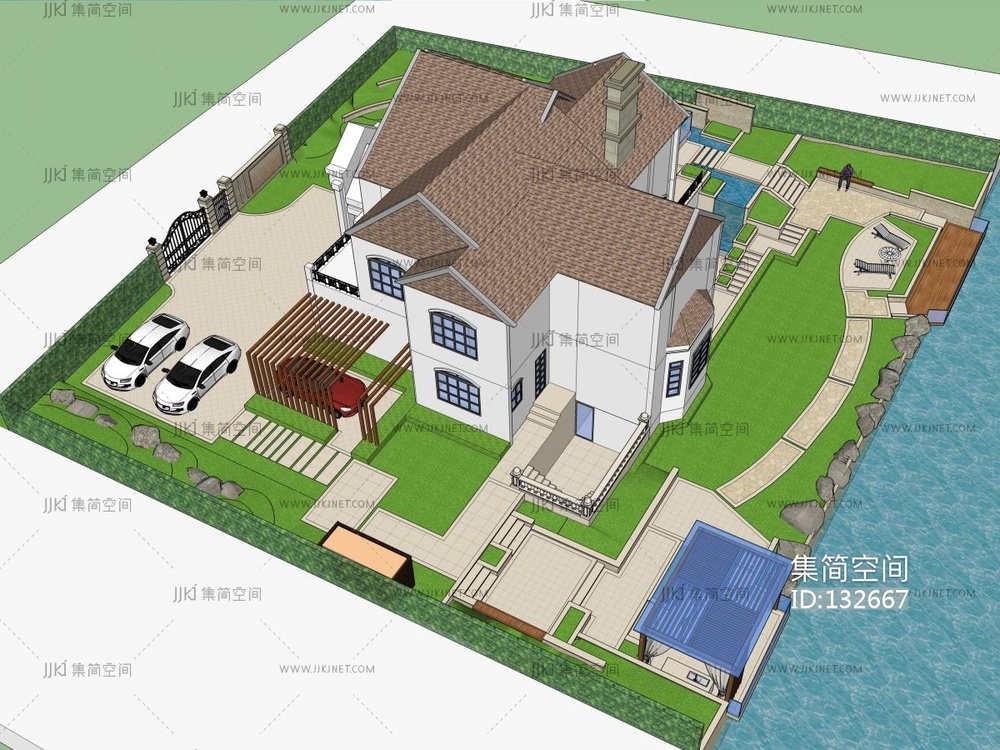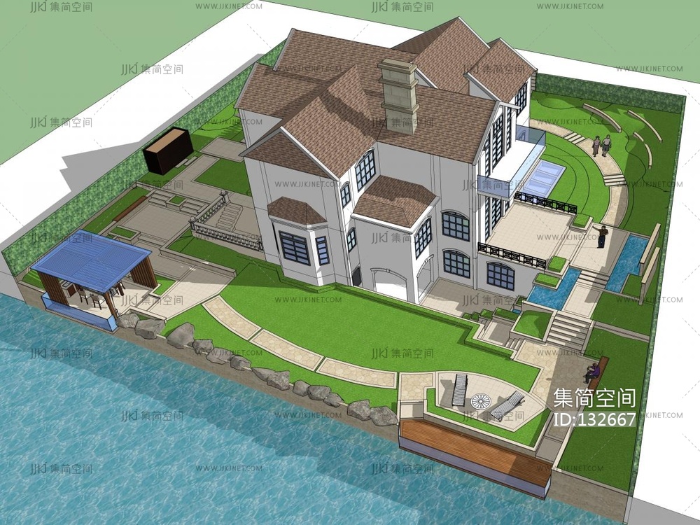 欧式庭院花园景观 su草图模型下载 [模型ID:132667]