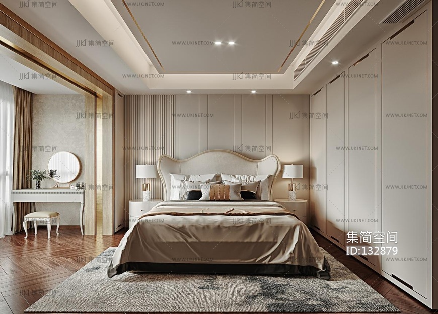 6法式中古家居卧室_主卧_飘窗卧室_高级灰卧室3D模型cr3d模型下载